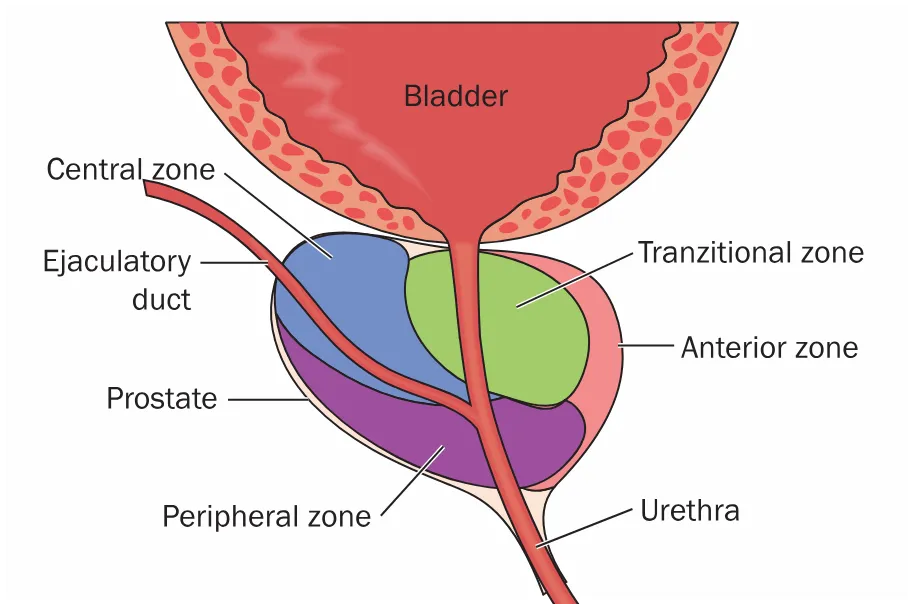 1.- El Crecimiento Benigno de la próstata ocurre en la zona prostática conocida como zona de transición, y que constituye la uretra prostática. De manera que el cremiento de de esta zona hacia la luz o la abertura de la uretra, dificultará el paso del flujo urinario desde la vejiga.