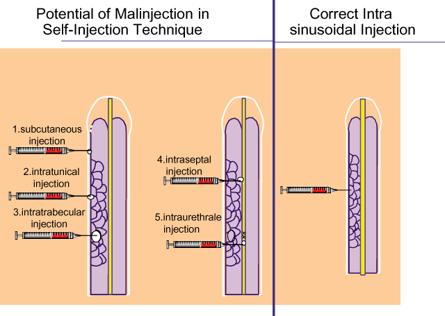 Debido a que la administración de este fármaco es vía intracavernosa, siempre será necesario un adiestramiento previo para una correcta colocación; para que el tratamiento sea eficaz y se eviten efectos secundarios como la fibrosis, hematomas, etc.